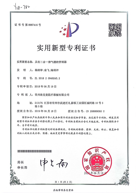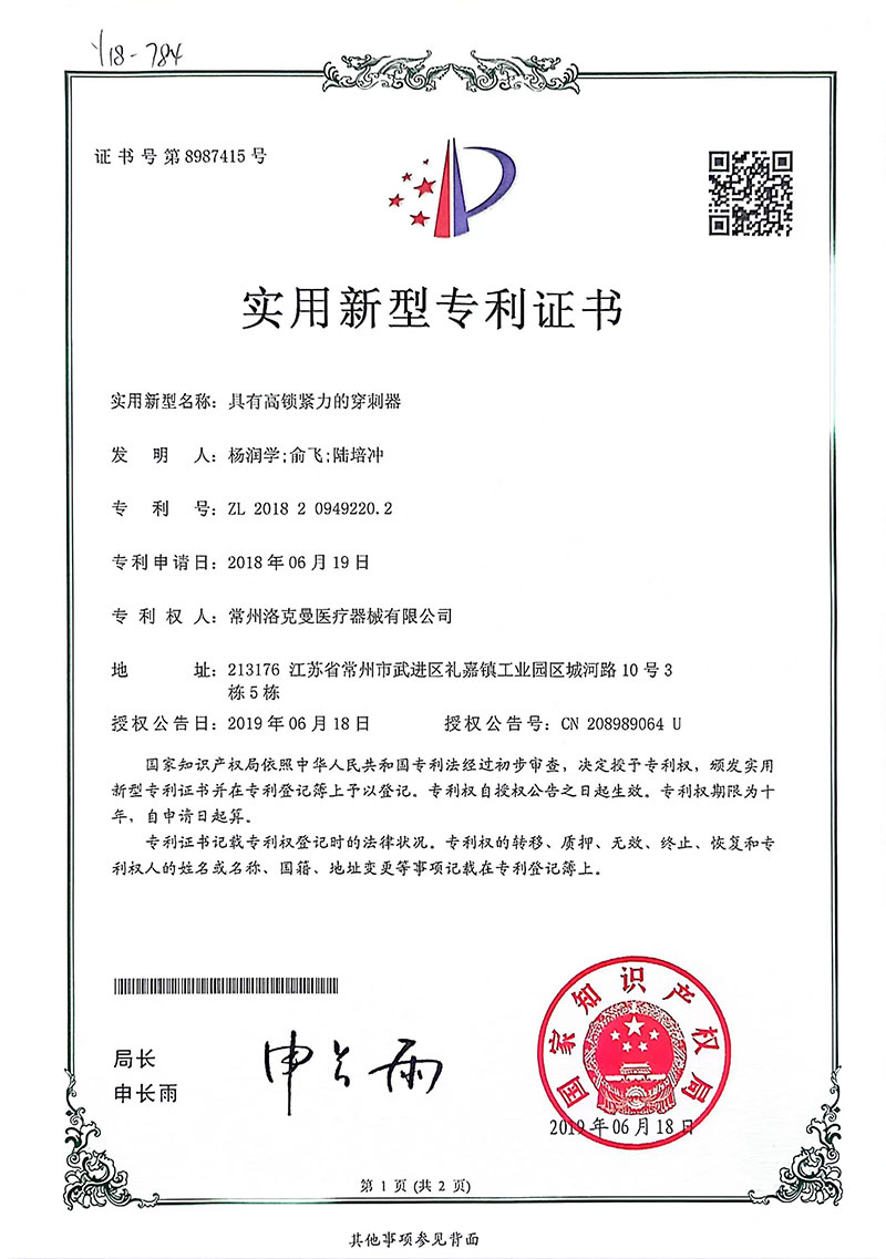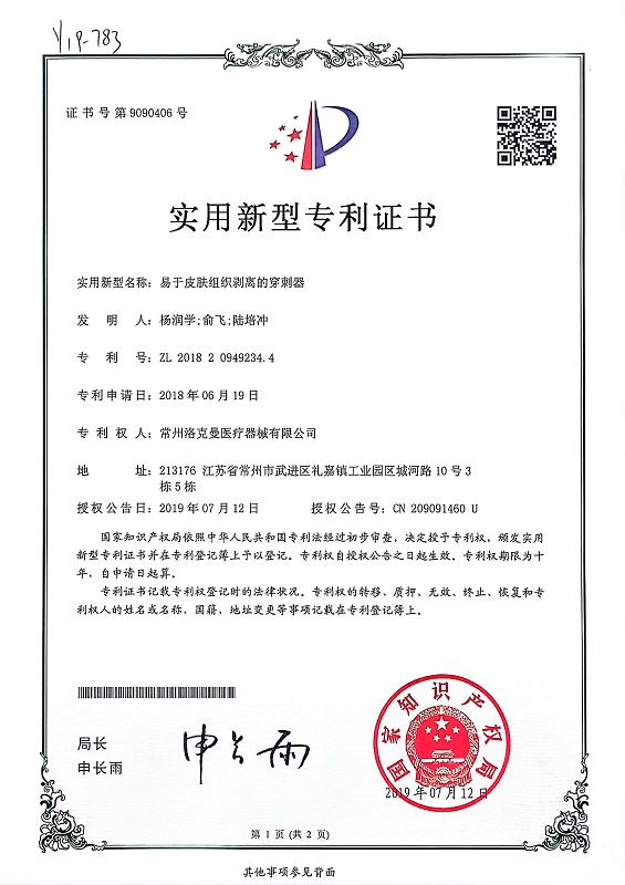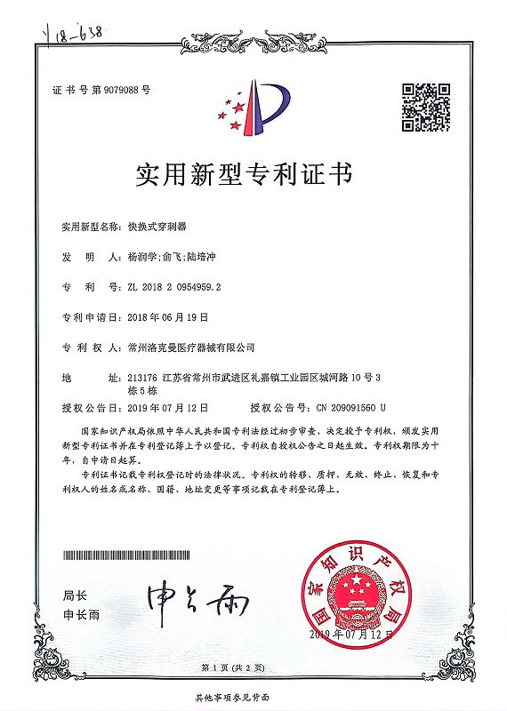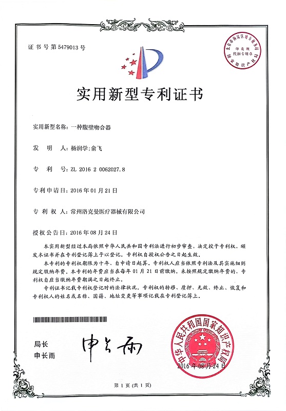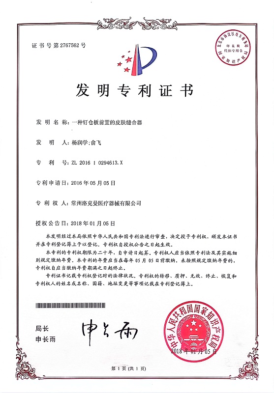 洛克曼集團(tuán)多年來(lái)致力于打造新型醫(yī)療科技產(chǎn)業(yè),已經(jīng)取得了52項(xiàng)專(zhuān)利,其中發(fā)明專(zhuān)利3項(xiàng)。并在2019年,成功掛牌江蘇股權(quán)交易中心,且先后獲得了“國(guó)家高新技術(shù)企業(yè)”、“常州市縫合器械工程技術(shù)研究中心”、“常州市專(zhuān)精特新中小企業(yè)”、“常州市瞪羚企業(yè)”、“江蘇省專(zhuān)精特新中小企業(yè)”等榮譽(yù)稱(chēng)號(hào)。